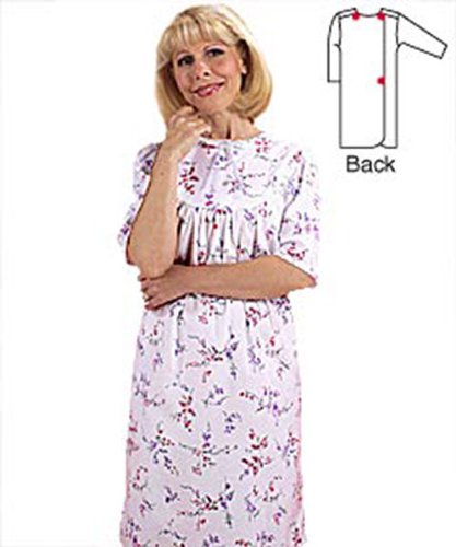 You Will Be Sleeping Pretty in this ribbon-trimmed nightgown this winter! Made of warm 100% cotton flannelette. The adaptive features include a full overlap at the back with double dome closures at each shoulder. This adaptive hospital gown is terrific for elderly/seniors who are disabled or wheelchair dependent. Great choice for nursing homes.